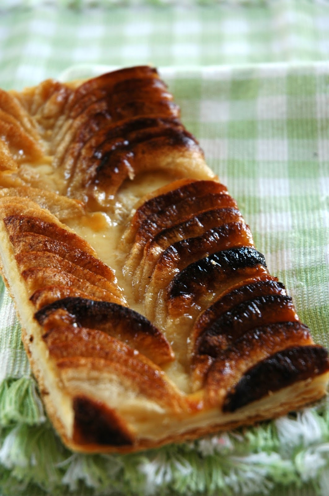A lisztet kimérjük, hozzáadjuk a barna cukorral megszórt kevés vízben felfuttatott élesztőt, majd a margarint, és a rizstej segítségével lágy tésztát gyúrunk. Langyos helyen 30 percig kelesztjük. Eközben a hagyományos módon elkészítjük a pudingot, az almákat pedig meghámozzuk és felcikkezzük. Egy tepsit kiolajozunk, lisztezünk, belesimítjuk a tésztát, megkenjük a pudinggal, ráhelyezzük az almákat és kevés cukorral, esetleg fahéjjal megszórjuk. 30 perc alatt 180 fokos sütőben készre sütjük. (a miénk sajnos megégett…..:-)