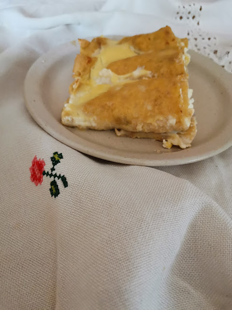 A palacsintát a hagyományos módon kikeverjük és olaj nélküli serpenyőben kisütjük. A kölest előző este kifőzhetjük, háromszoros mennyiségű növényi tejben. Másnap összeturmixoljuk, hozzáadjuk a citromhéjat, citromlevet, vaníliás cukrot, nyírfacukrot. A vaníliás pudingot kikeverjük hideg vízben, majd beleöntjük a  forrásban lévő tejbe. Megfőzzük. A kisütött palacsintákat megtöltjük, feltekerjük. Majd félbevágjuk. Kiolajozott tepsibe  tesszük a megtöltött, félbevágott palacsintákat, majd leöntjük az egészet a pudinggal. 200 fokon kb. 10 perc alatt összesütjük.