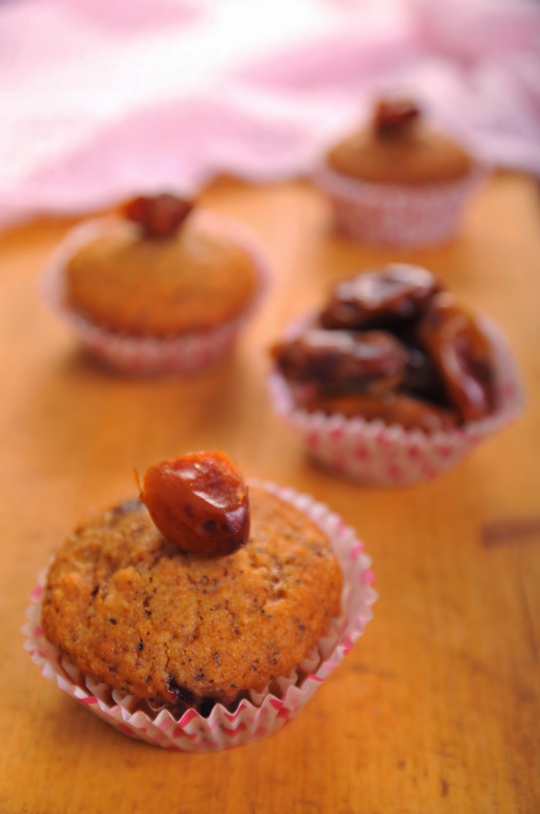 A lisztet, sütőport, cukrot kimérjük és összekeverjük. Egy másik tálban az olajat, a vizet vegyítjük össze, a diót és a datolyát apró darabokra vágjuk. Mindezt hozzáadjuk a lisztes keverékhez. 180 fokos sütőben muffinformába téve 25-30 perc alatt kisütjük.