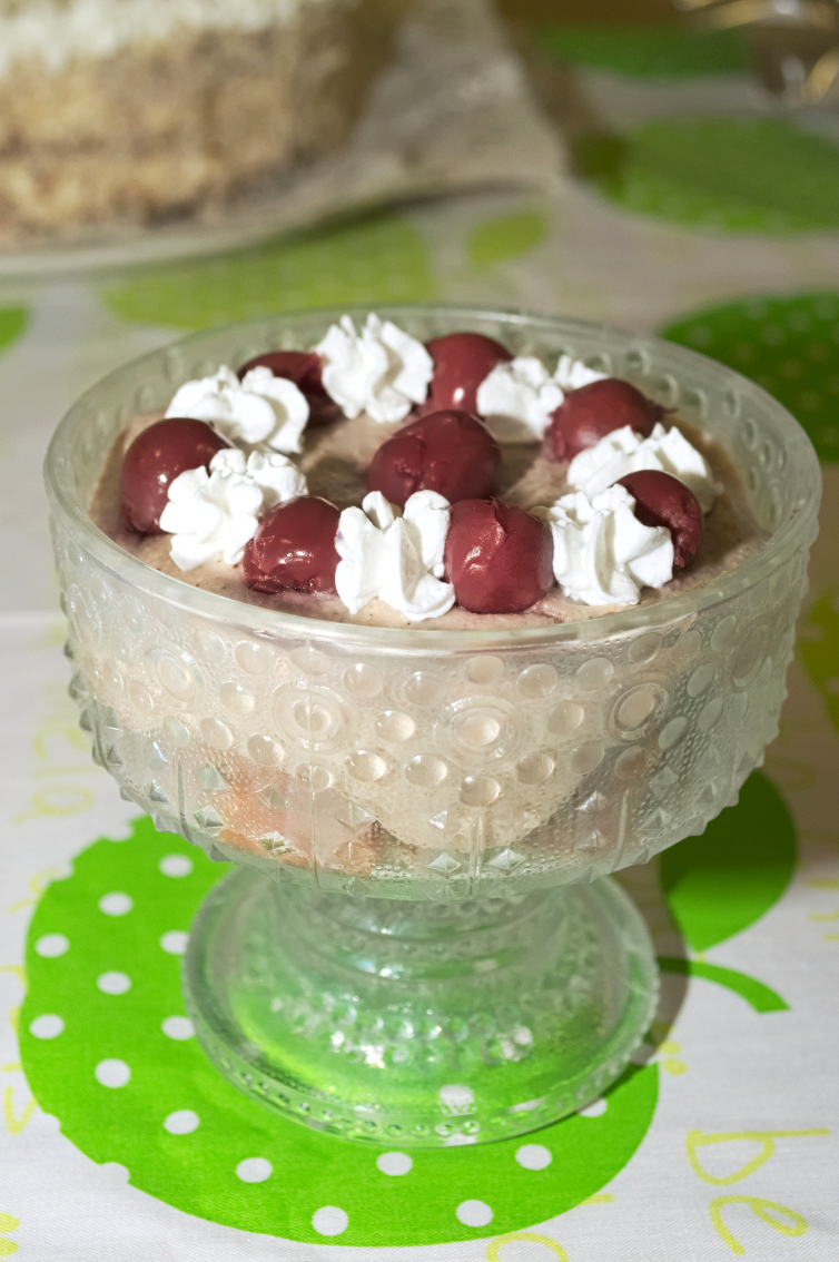 krémmel és gyümölcsökkel. A tetejét díszíthetjük tejszínhabbal és megszórhatjuk kevés karobporral.