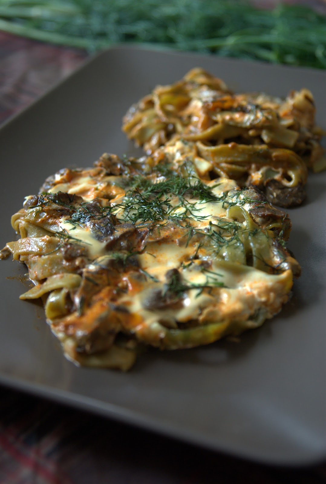 Egyik délután „hazaugrottunk” Békés megyébe, drága anyósom születésnapi ajándékaként.:-) És nemcsak az otthoni kertünkből hoztunk finomságokat, hanem drágám nagynénjétől is kaptunk friss, zsenge tököt és kaprot. Hihetetlen illat volt az autóban 🙂 Anyósom este készített gombapörköltet, amelyből valamennyit elhoztunk, és, mivel úgyis főztem ki hozzá tésztát, gondoltam, megrakom és kaporral fűszerezem. Hát, nagyon illik a két dolog egymáshoz, nem is tudom, eddig miért nem próbáltam. 🙂