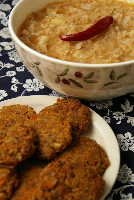 Tegnap olyan finom fasírtot ettünk rokonainknál, hogy eszembe jutott, már régen készítettem, pedig minden alapanyagunk megvan hozzá (hiszen mindig abból készül a fasírt, ami van itthon, néha köles az alapja, néha árpa, most éppen barna rizsből van több, ill. zöldségekből. Mivel a gabonához megy az olajos mag (együtt a legjobb, teljesértékű a szervezet számára), az nem is volt kérdés, hogy kerüljön-e bele.A káposzta nem újdonság, szép lassan ennünk kell, ha nem akarjuk, hogy megromoljon. Sajnos paradicsomosan egyikünk sem szereti, így csak „sima” főzelék készült belőle.
