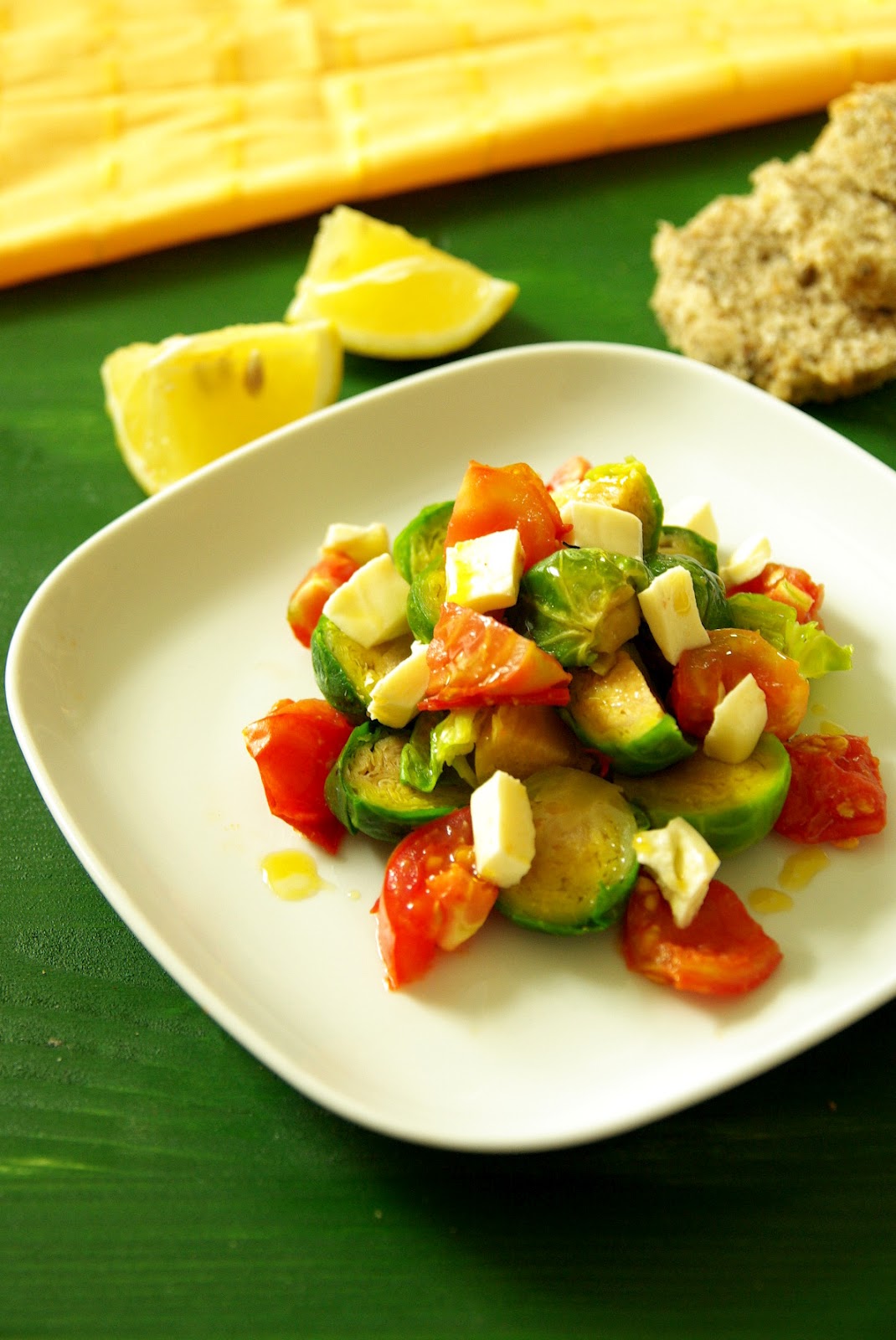 A kelbimbót sós vízben roppanósra pároljuk. A felvágott paradicsomokat kevés olívaolajjal kikent tepsibe tesszük és megpirítjuk. Majd a kelbimbót egy tálra halmozzuk, hozzáadjuk a paradicsomot, kockákra vágott szójasajtot, megsózzuk, és olívaolajjal és kevés citromlével meglocsoljuk. Finom lehet növényi tejföllel, majonézzel is.