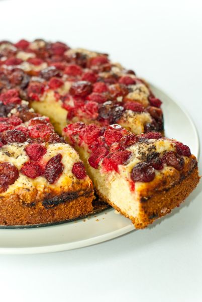 Nagyon egyszerű: a lenmagpelyhet beáztatjuk, megvárjuk, amíg „nyálkás lesz”: ez tartja majd össze a tojás helyett a tésztánkat, a tészta összetevőit összekeverjük, olajozott, lisztezett tepsibe öntjük (vagy tesszük, mert nem annyira folyékony), ráhelyezzük a gyümölcsöket, megszórjuk mákkal és megsütjük (kb. 40 percalatt, közepes lángon). Legközelebb a tésztát két részletben teszem bele a tepsibe, és középre is szórok gyümölcsöt.
