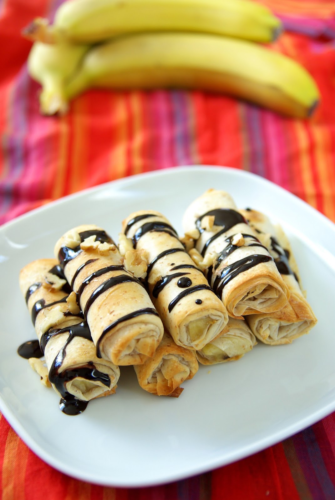 Nagyon egyszerű és gyors az elkészítése: a banánokat vágjuk először széltében félbe, majd hosszában is kétszer félbe. Így a két banánból 16 csíkot kapunk. Terítsük ki az első réteslapot, kenjük meg olajjal, majd helyezzük rá a másodikat, ismét kenjük meg olajjal, majd a harmadik lapot is rakjuk az előzőekre. Vágjuk 8 egyenlő téglalap alakúra a rétest. Minden kocka hozzánk közelebb eső felére tegyünk 1-1 rúd banánt, majd a először a tészta merőleges végét hajtsuk fel, a banán két végéig, majd tekerjük fel a banánt. Sütőpapíros tepsibe tegyük (a tészta hajtása alul legyen), kenjük meg olajjal és 200 fokos előmelegített sütőben 10-12 perc alatt készre sütjük. Xilitből készült porcukorral, ill. karoböntettel, és dióval tálaljuk. ha nutellával gazdagítjuk, akkor 1-1 ek. nutellát tegyünk a banánok alá.