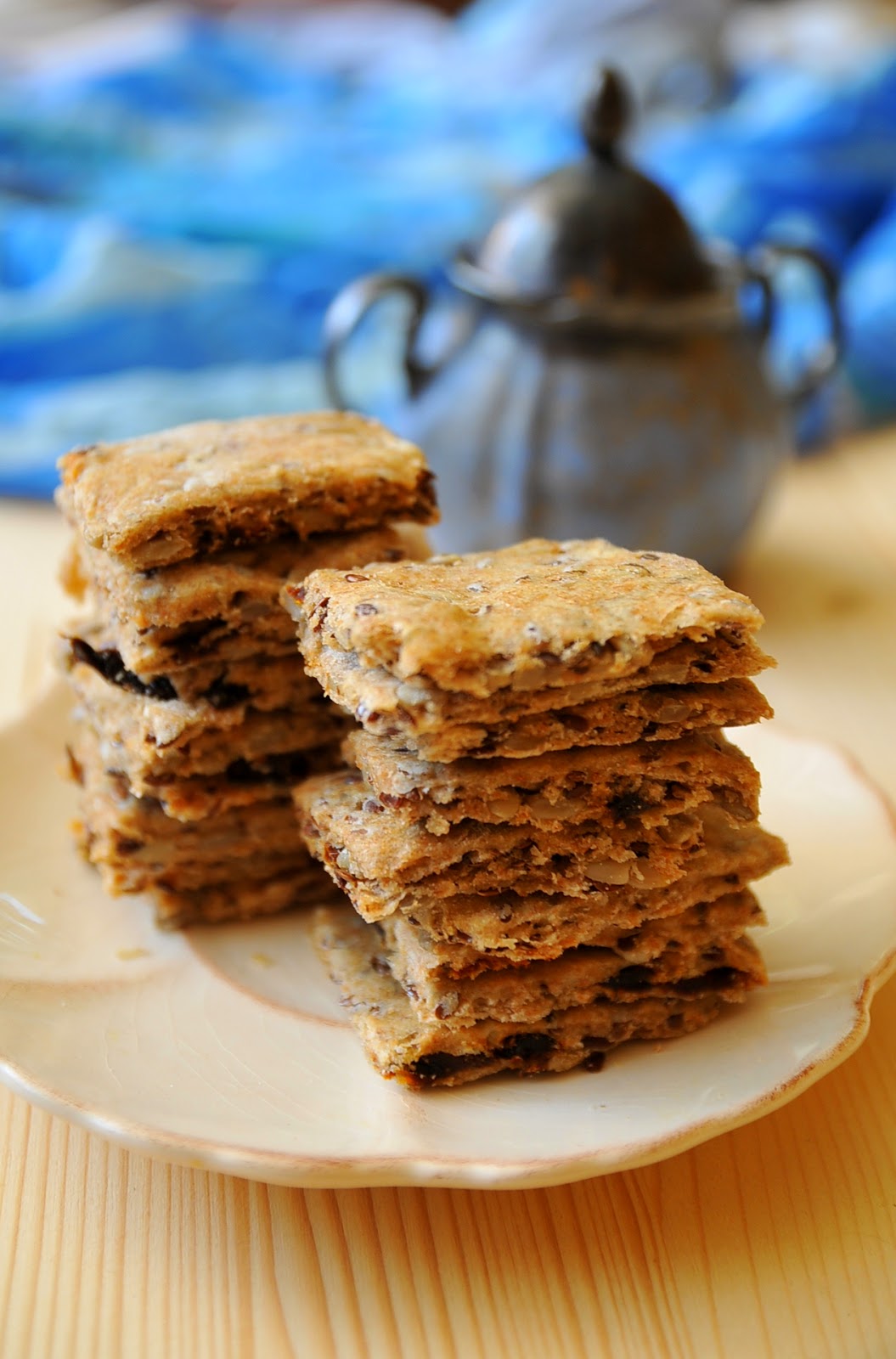 A liszteket é a zabot összekeverjük. Hozzáadjuk a sütőport, magokat (ezeknek a fele mennyiségét meg is darálhatjuk előtte), sót, a felkockázott paradicsomot, végül a nedves összetevőket (olaj, víz). Állni hagyjuk 30 percig, majd lisztezett felületen kinyújtjuk és kikent tepsibe tesszük. Tetszőleges alakúra vagdossuk. 180 fokos sütőben kb. 20 perc alatt összesütjük.