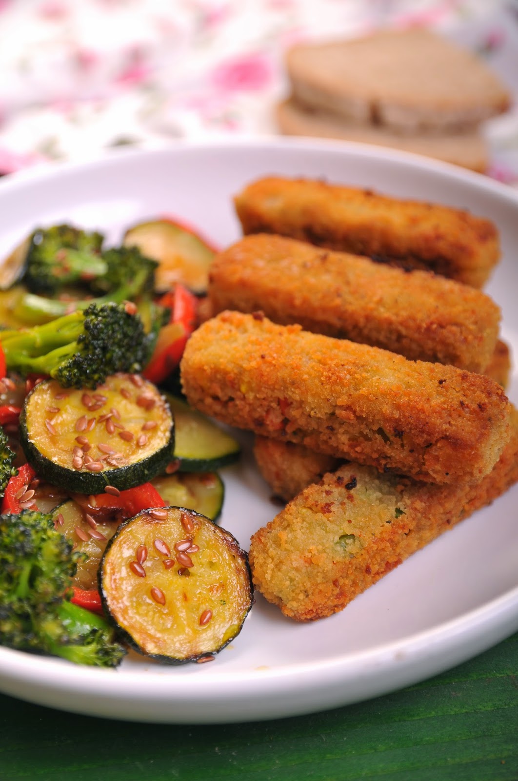 A hagymát meghámozzuk, felaprítjuk és vízen megpároljuk. A zöldségeket egy tálba öntjük és botmixerrel annyira zúzzuk szét, hogy még maradjanak egész szemek  is. Hozzáadjuk a megpárolt hagymát, a szétnyomott fokhagymát, a lisztet, a lereszelt növényi sajtot, és a lenmagpelyhet. Sóval ízesítjük. Amennyiben szükséges, még adunk hozzá morzsát, vagy lisztet. Rudacskákat formálunk és kenyérmorzsában történő meghempergetés után kókuszzsírral kikent tepsiben 30 perc alatt (egyszer forgatva) 170 fokon kisütjük.