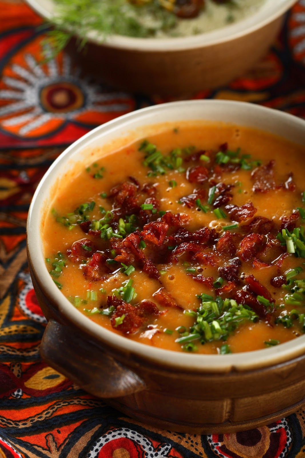 A sárgarépákat meghámozzuk, és felkarikázzuk. A krumplit és a paradicsomot és vöröshagymát is szintén meghámozzuk, feldaraboljuk. Egy edénybe tesszük, meglocsoljuk olajjal, vízzel, megszórjuk vegamix-szel és puhára főzzük. Majd hozzáöntjük a zabtejszínt, belevágjuk a kaprot, fokhagymát, megsózzuk és vizet hozzáadva botmixerrel pürésítjük. Szükség szerint még vízzel hígíthatjuk. Metélőhagymával megszórjuk, és aszalt paradicsommal tálaljuk.