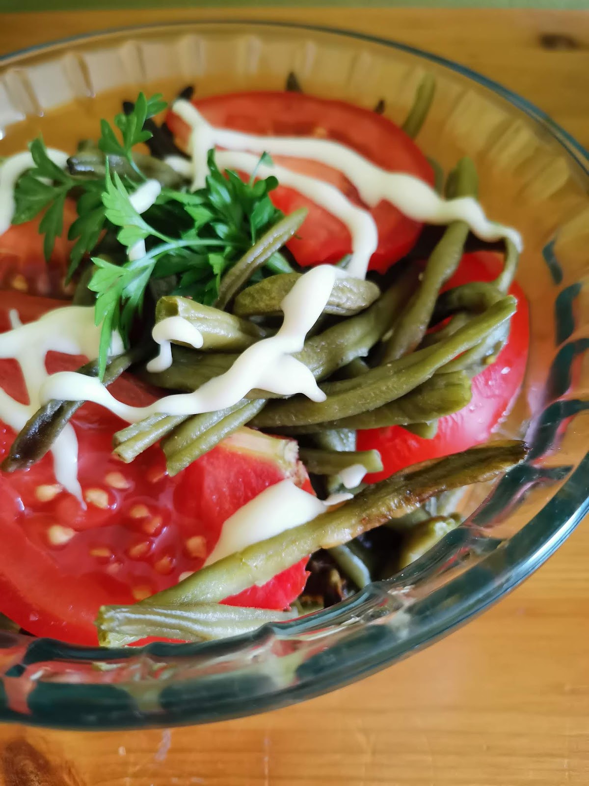 Eközben összevágjuk a paradicsomot, hagymát, petrezselymet vagy kaprot, kikeverjük az öntetet, melyet tetszés szerint sózunk, citromozunk. A zöldbabot kihűtjük, majd mindent összekeverünk és tálaljuk is. 🙂