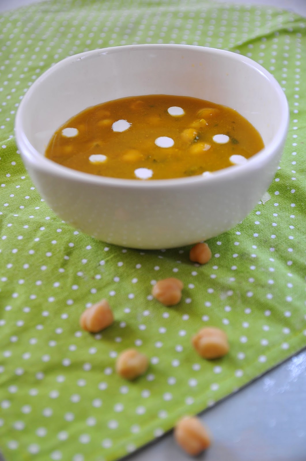 A csicseriborsót előző este beáztatjuk és másnap sós vízben kifőzzük. A zöldségleves kockából alaplevet főzünk. A póréhagymákat felkarikázzuk és 2 ek. kókuszolaj + víz keverékén megpároljuk. Amikor roppanós, hozzáadjuk a kurkumát, az ételízesítőt és a sót. Puhulásig főzzük, majd felöntjük vízzel és szójatejszínnel és összeturmixoljuk. Beletesszük a megfőtt csicseriborsót, a felaprított petrezselymet és 5 perc alatt összefőzzük. Reszelt növényi sajttal, esetleg pirítóssal tálaljuk.