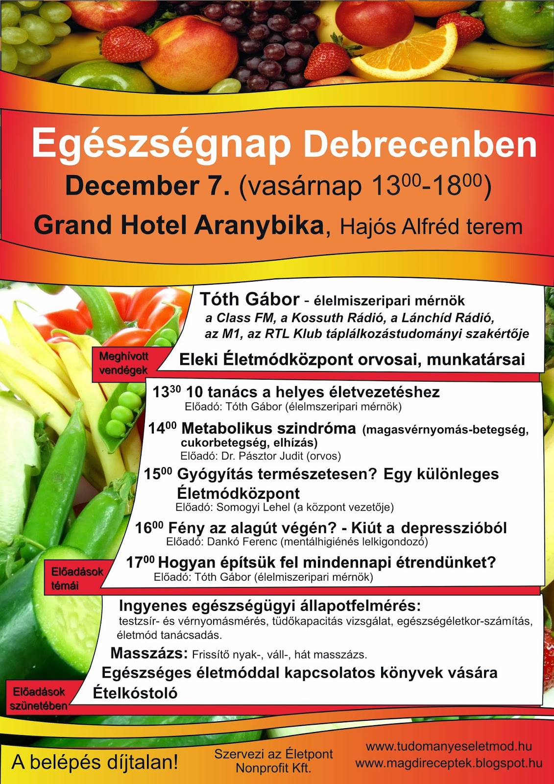 Az Egészségnap a Grand Hotel Aranybikában 13-18 óráig tart, és többek közt Tóth Gábor élelmiszeripari mérnök előadásai lesznek hallhatóak.