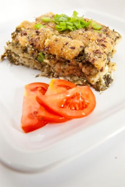 Spenótos-tofus rakott nokedli
