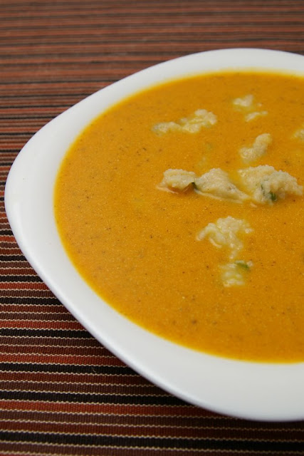 A zsemlegombócba tettem egy (tk.) zsemlét, zabpehelylisztet, fehér lisztet, petrezselymet, sót. Amikor megfelelő lett a massza, kifőztem és beletettem a levesbe.Télen öröm ilyen intenzív színű levest kanalazni. 🙂