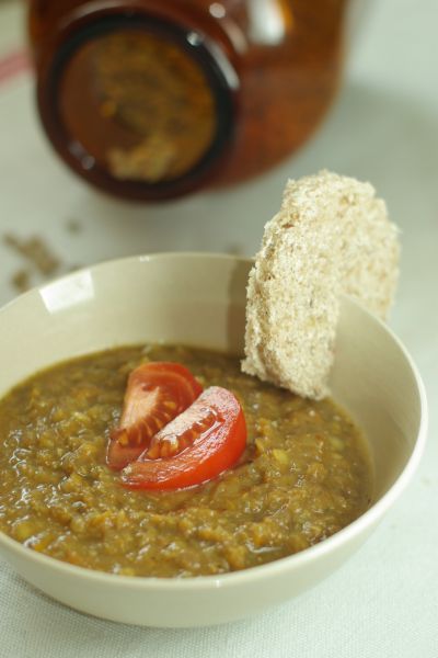 A lencsét sós, babérleveles, majorannás vízben megfőzzük, a sütőtököt sütőben megsütjük. A hagymákat meghámozzuk, felvágjuk és vízen megpároljuk. Majd egy mély tálba tesszük a megfőtt, leszűrt lencsét, a megsült sütőtök szeleteket, a párolt hagymát, olajat, és a fűszereket. Botmixerrel krémesítjük, és máris ehetjük 🙂