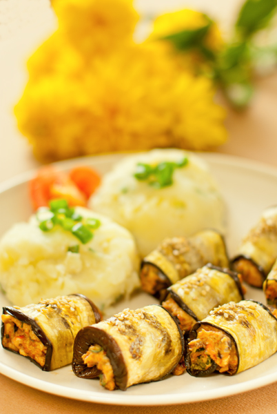 Ezután a padlizsánszeleteket megkentem ezzel a krémmel (ami kenyérre is nagyon finom, ezért a tofu másik feléből készítettem is pástétomot), feltekertem, szezámot szórtam a tetejére és betettem a sütőbe, kissé (kb. 5 percre) összesülni. Nagyon pikáns, finom lett 🙂