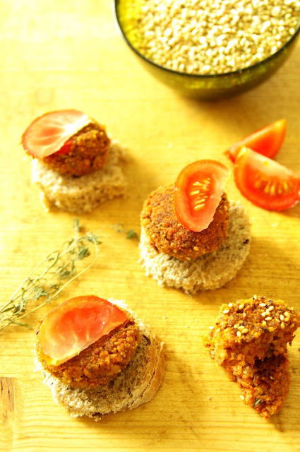 A hajdinát sós vízben megfőzzük. A diót megdaráljuk. A kenyeret beáztatjuk. A megfőtt hajdinát lehűtjük, hozzáadjuk a kinyomkodott kenyeret, a diót, fűszereket, a vízen megpárolt hagymát és szintén apróra vágott, megpárolt kápia paprikát, a fokhagymát, pritaminpaprika lekvárt. A lenmagpelyhet beáztatjuk és ezt is hozzáadjuk. Végül fasírtokat formálunk, morzsába forgatjuk és olajozott tepsibe téve kisütjük. Naggggyon finom! 🙂