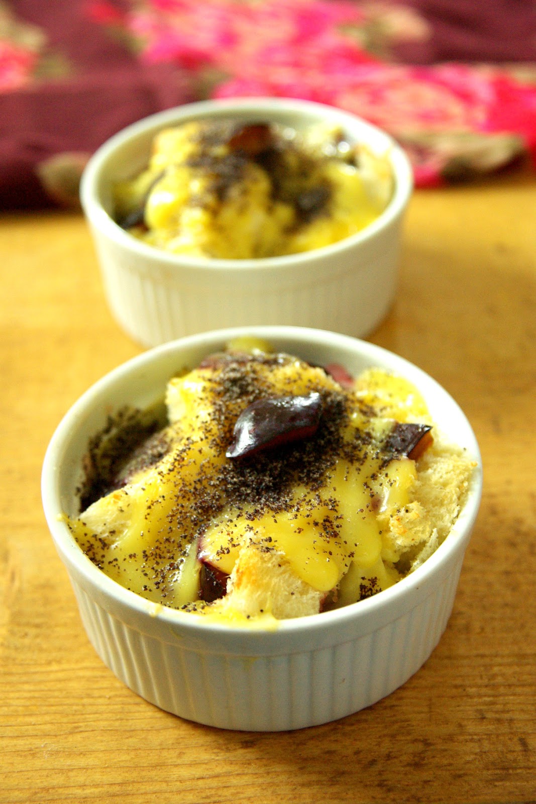 A kalácsokat felvágjuk, majd kisebb darabokra vágjuk. (Négyfele, vagy karikákra szaggatjuk.) Tűzálló tálba beleszórunk szilvát, majd rátesszük a kalácsdarabokat, úgy, hogy egy karikát/darabot elhelyezünk a tálba, majd halmozunk rá szilvát, majd ismét kalács, majd szilva következik, ezt addig folytatjuk, amíg el nem fogy a kalács és a szilva is. Eközben elkészítjük a vaníliapudingot: a4 dl  mandulatejet felteszünk főni, hozzáadjuk a nyírfacukort, 1 dl-t pedig kikeverünk a pudingporral. Amikor forr a tej, ezt beleöntjük és 5 perc alatt készre főzzük. Ezt ráöntjük a kalácsokra, megszórjuk mákkal és 190-200 fokon 20 perc alatt összesütjük. Közben mérsékeljük a hőmérsékletet, nehogy a kilógó kalácsszeletek megégjenek.