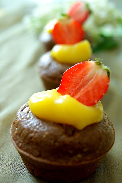 A tészta alapanyagait jó alaposan összekeverjük. Majd egy muffinformát kiolajozunk, lisztezünk és mindegyik rész felébe töltjük a tésztát. Majd ebbe beleteszünk 1-1 kisebb epret- úgy, hogy négy fele vágjuk. Majd befedjük a tésztával. Közepes lángon kisütjük, kb. 40 perc alatt.