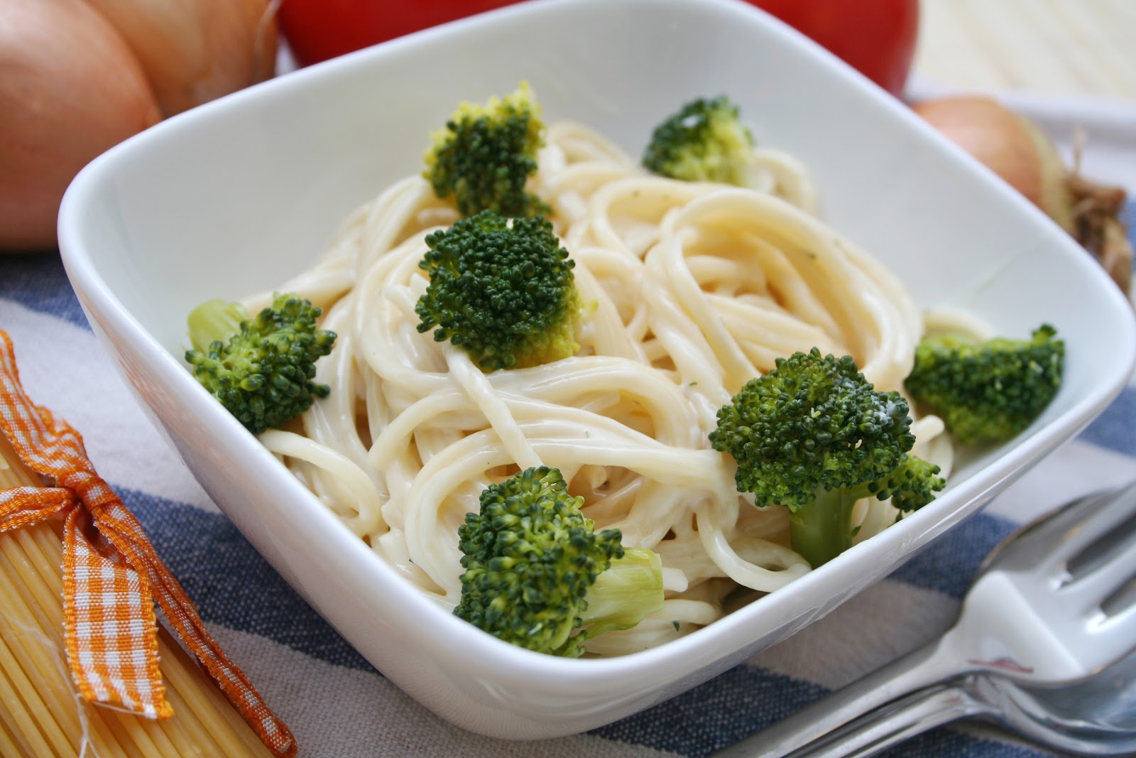 A tésztát a szokásos módon sós, olajos vízben kifőzzük. A brokkolit sós vízben roppanósra pároljuk.  A tofut a vízzel, olajjal, citromlével, sörélesztőpehellyel alaposan összeturmixoljuk, majd hozzáadjuk a zabtejszínt. Megkóstoljuk, igény szerint sózzuk még. A póréhagymát felkarikázzuk és olaj és víz keverékén megpároljuk. Ezt is hozzátrumixoljuk a szószhoz. A tésztához tálalás előtt keverjük a szószt, ill. halmozzuk meg brokkolival. 🙂 Paradicsomsalátával fogyasztottuk.