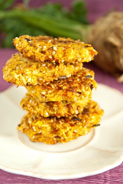 A zellert, répát lereszeltem, a hagymát vízen megpároltam, fokhagymát összenyomtam, majd minden hozzávalót összekevertem, olajat öntöttem és szezámot szórtam hozzá és kb. 1 órát állni hagytam, és sütőpapírral kibélelt tepsiben kisütöttem (permeteztem a fasírtokra olívaolajat sütés előtt, ill. egyszer forgattam és újrapermeteztem őket:). Nagyon ízletes fasírt lett. (Ebből az adagból kb. 15-18 db készült)